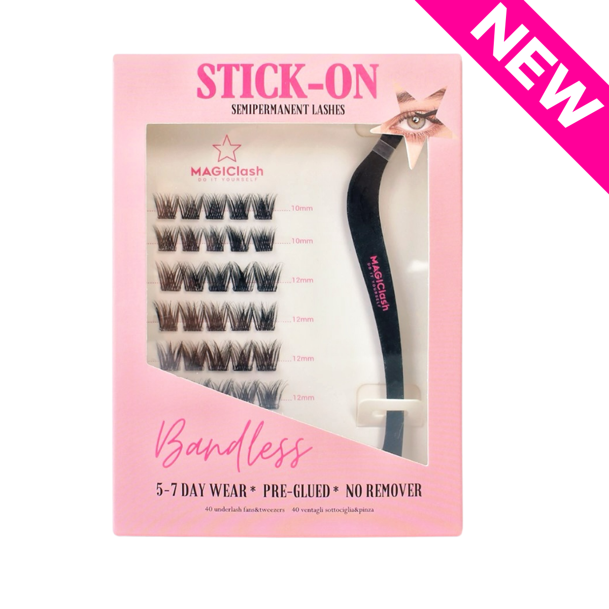 2-Lash: applica i ventagli MAGIClash al di sotto delle ciglia naturali distanti 1-2mm dalla rima ciliare, usando la speciale pinza di applicazione