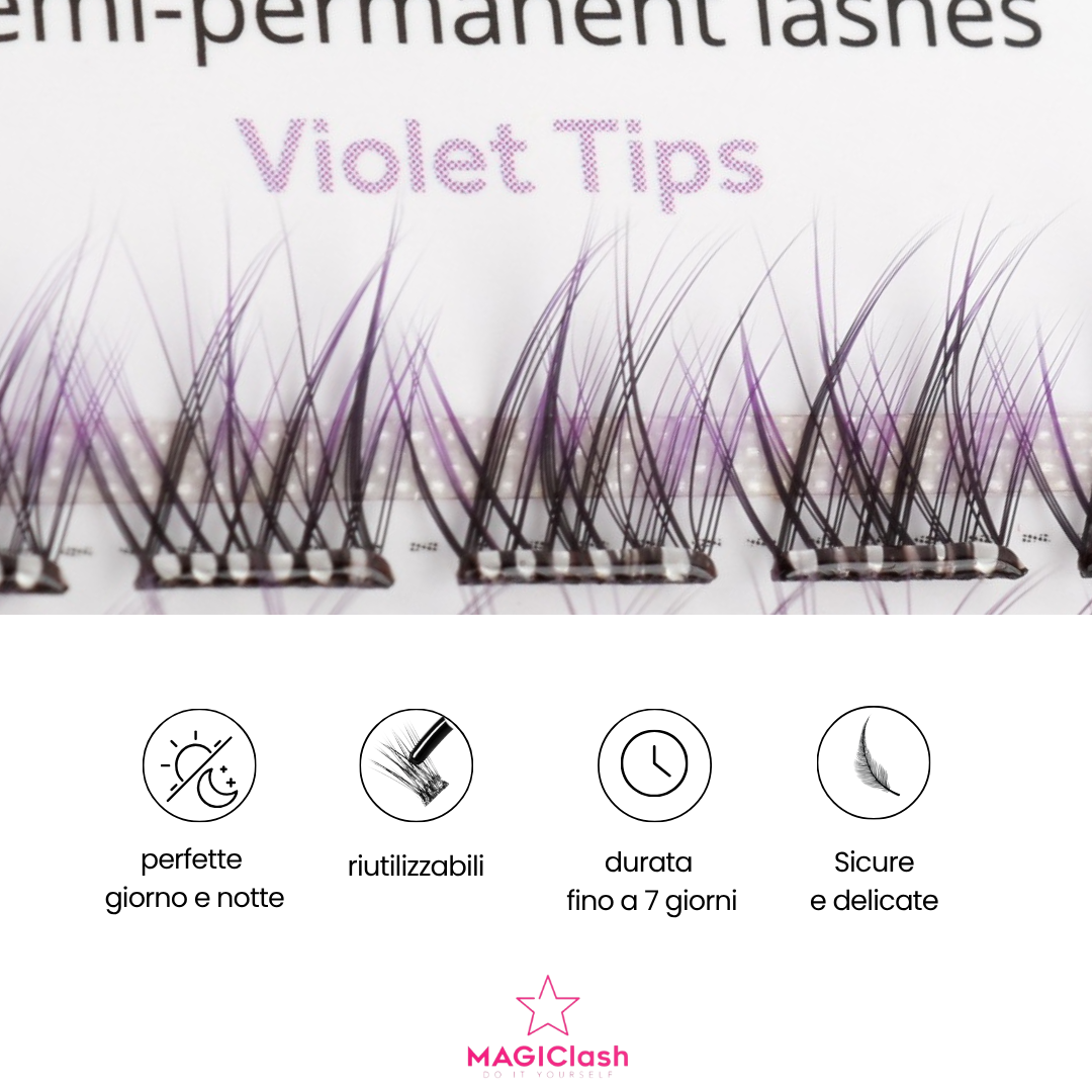 Dai colore al tuo sguardo con le MagicLash Stick-On Color Tips, 15 ventagli di ciglia semi-permanenti punte viola, con adesivo FlexiAdhesive incorporato di ultima generazione!